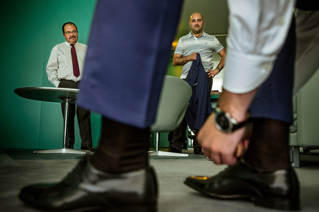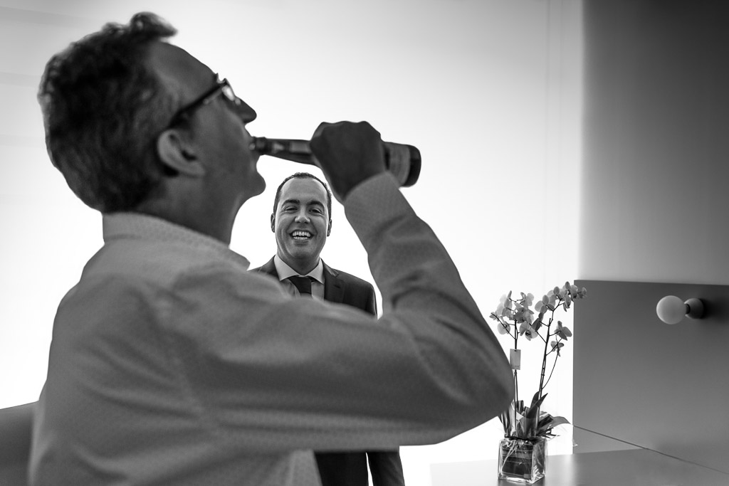 Después de un rato conociendo a la familia de Carlos hubo un pequeño incidente. Carlos se manchó la camisa y salto el pánico en la habitación del hotel. Menos mal que el responsable del hotel consoló a los presentes, y en un momento, se llevó la camisa para limpiarla y devolverla a los 20 minutos sin rastro de mancha alguno.