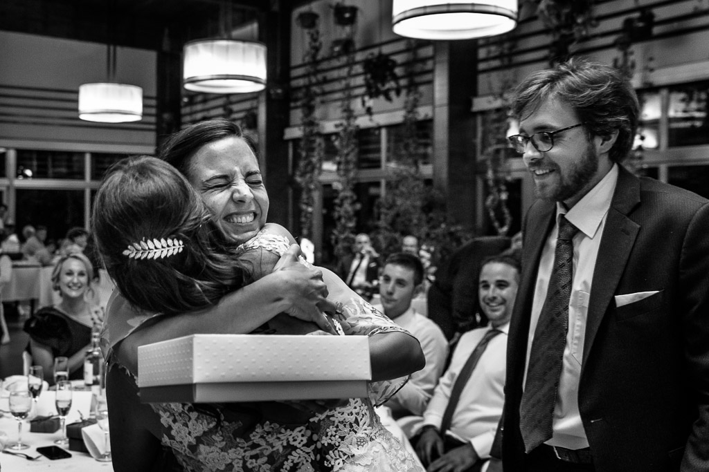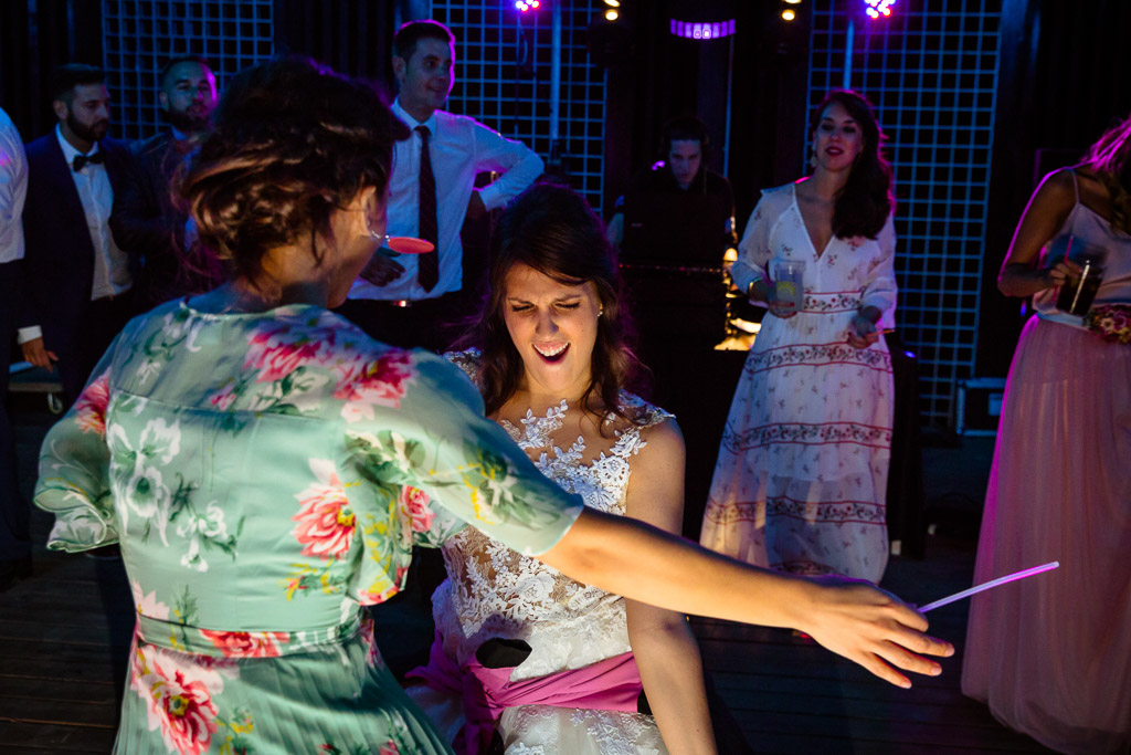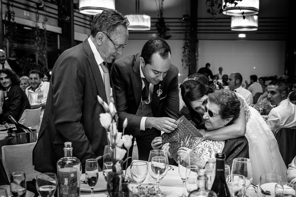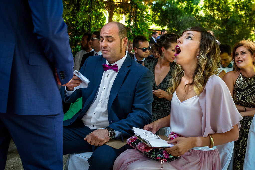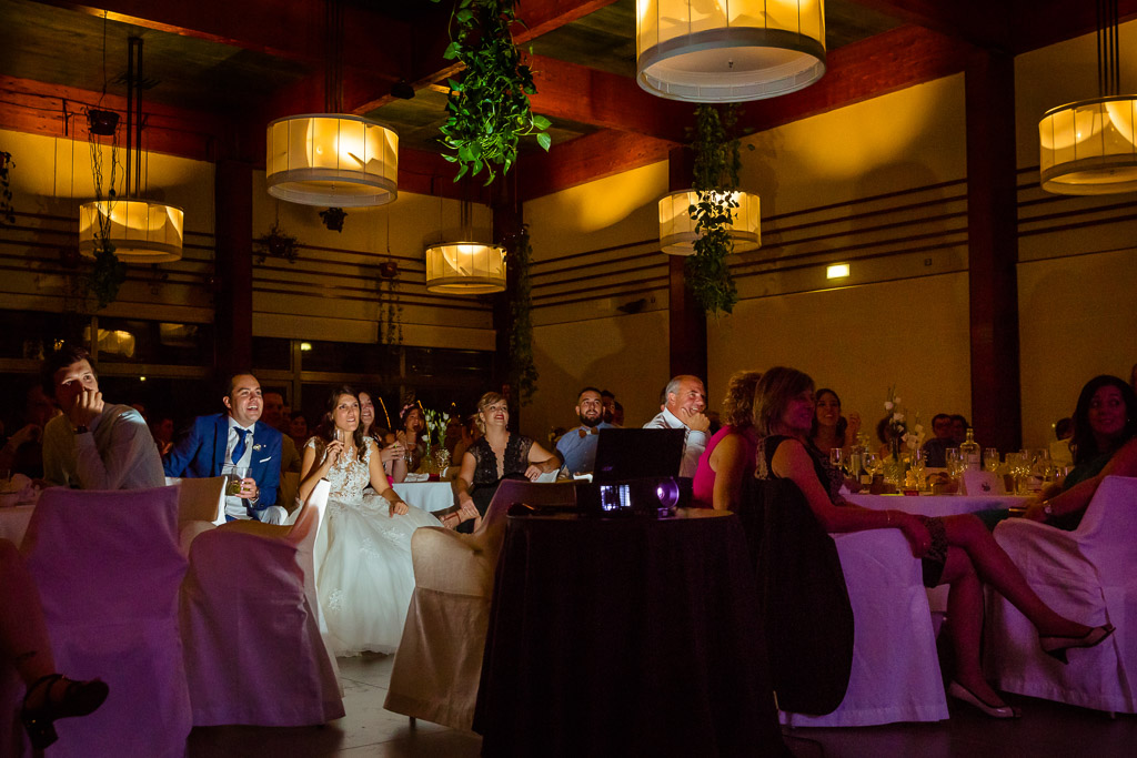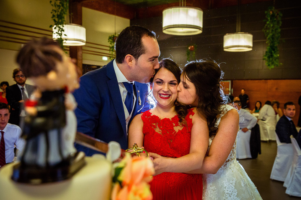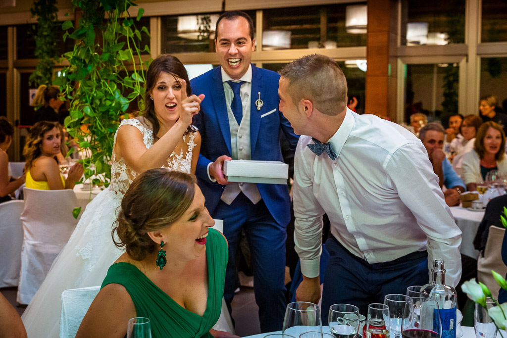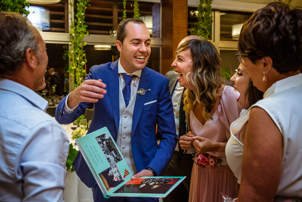 Tras la ceremonia todo fueron risas. Un coctel muy alocado y un banquete que dio mucho juego, ya que los familiares y amigos amenizaron mucho la velada con bromas y regalos.