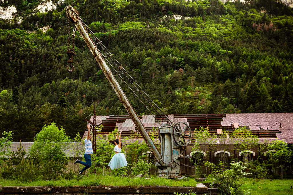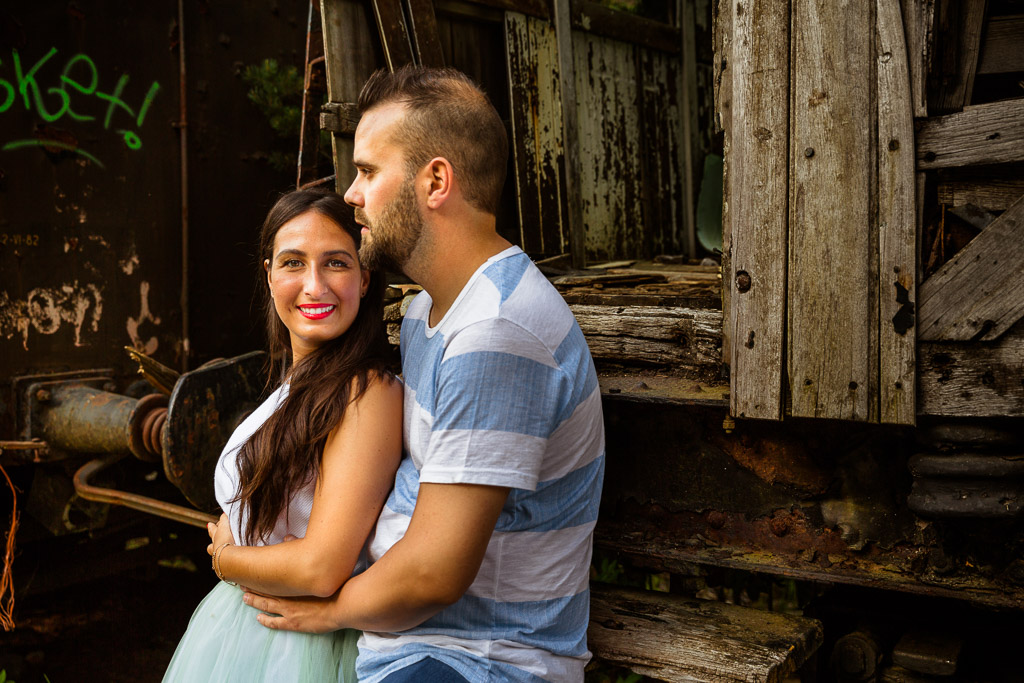 Cuando entras en las instalaciones y empiezas a recorrer las vías y trenes abandonados, y ves todo perfectamente integrado en una majestuosa vegetación que lo envuelve, te vuelves loco de ganas de fotografiarlo. Es una extensión muy grande de terreno en la que cada rincón de la estación es un mundo aparte para poder hacer una sesión de fotos. En definitiva, el lugar ideal para un fotógrafo de bodas para realizar su trabajo.