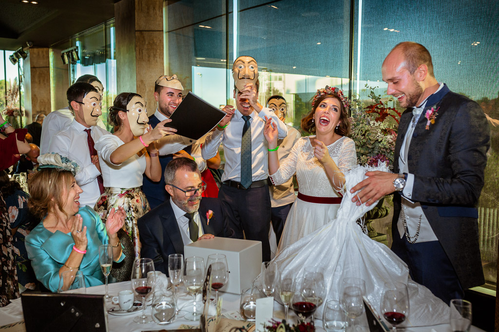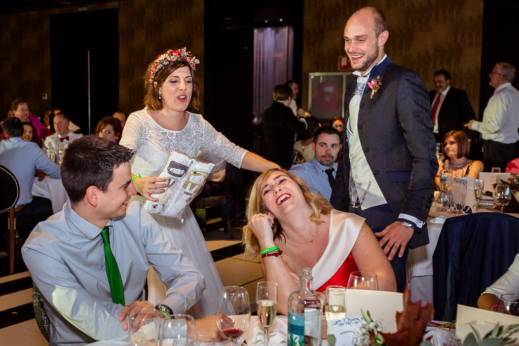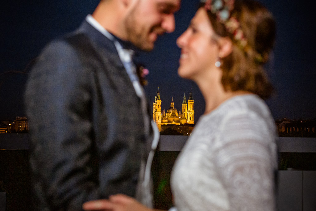 Fotografo en restaurante Aura Zaragoza. Boda de Alba y David en Iglesia Santiago el Mayor.