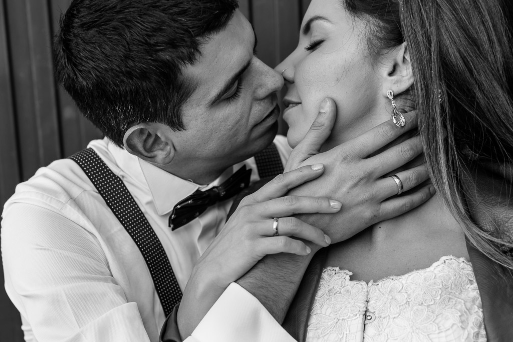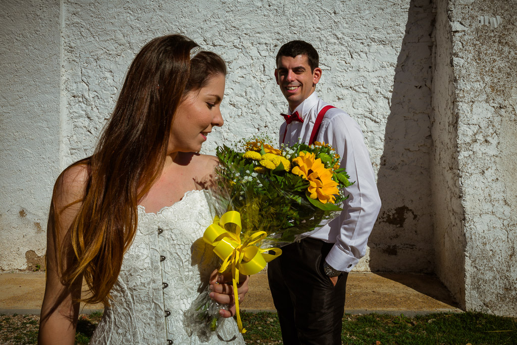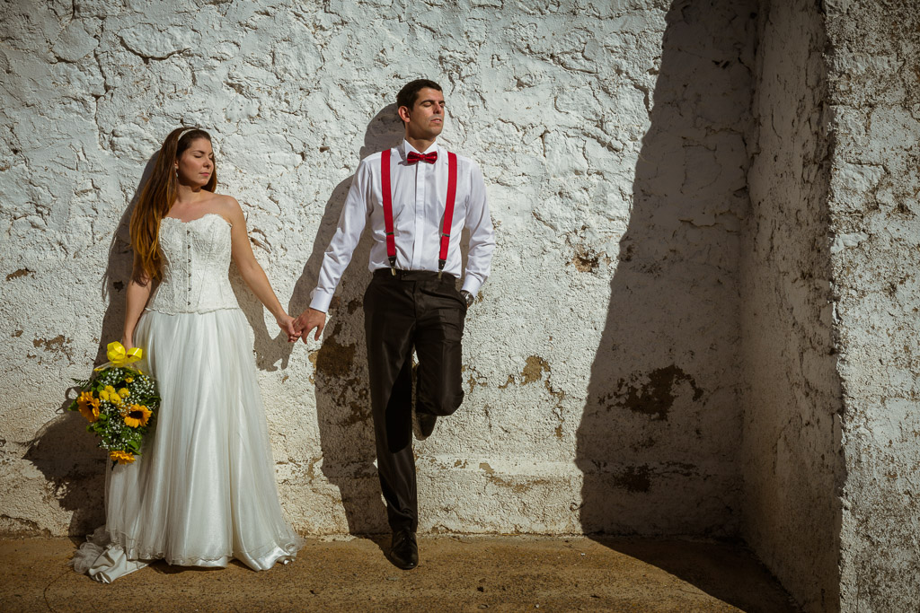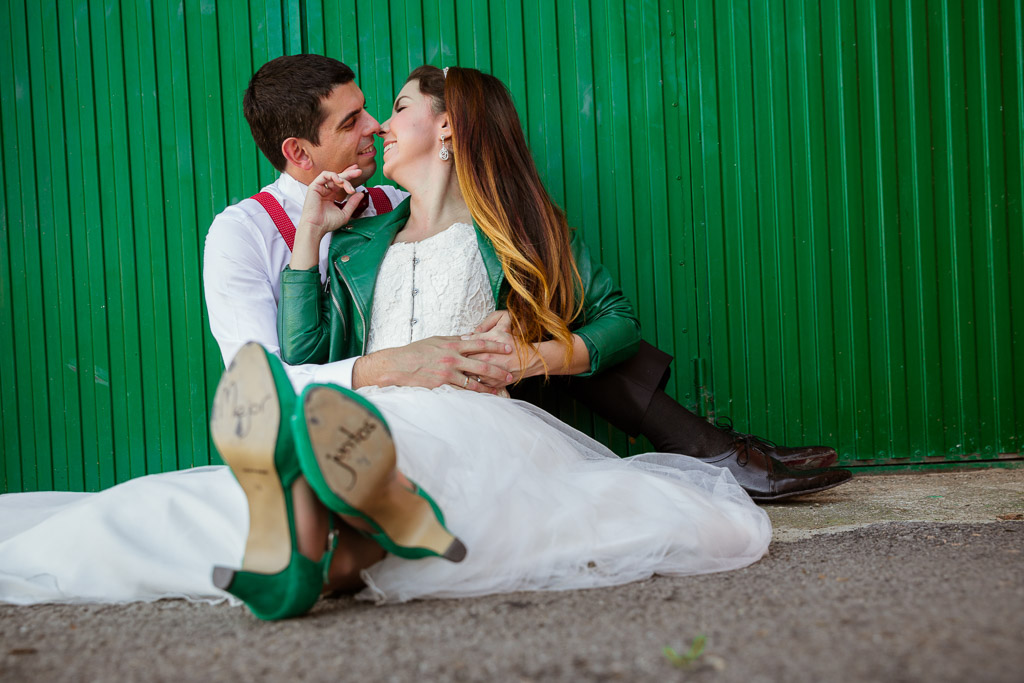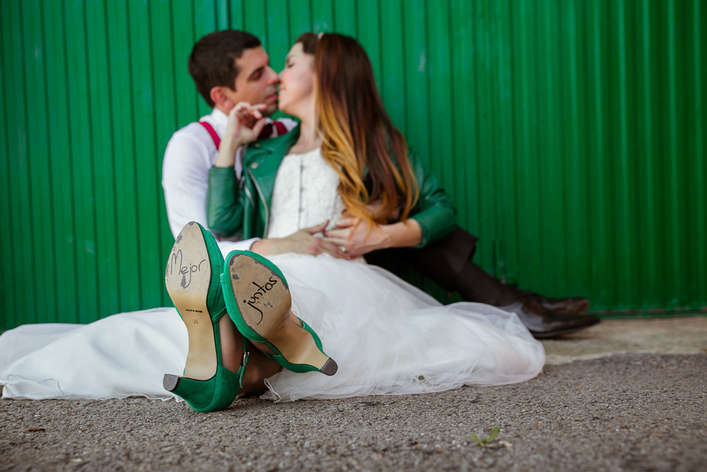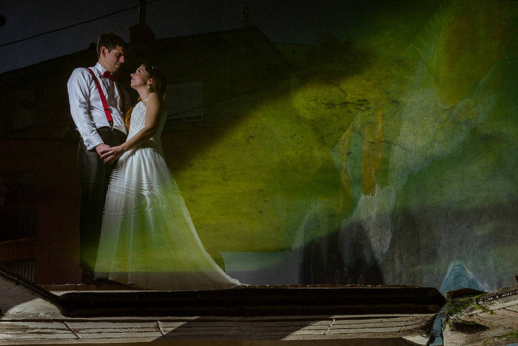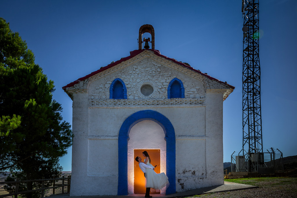 El día de reportaje quedamos por la mañana en un bar del pueblo. Mientras nos tomábamos un café, Guillermo me iba explicando el recorrido que querían hacer para el reportaje. Eran puntos muy concretos del pueblo y los alrededores. Un conjunto de rincones que tenían un significado muy particular para ellos. Desde campos con infinidad de parras de uva, oliveras, hasta la ermita de la Virgen de las Nieves, desde donde hay unas vistas increíbles de todo el pueblo. Y como colofón, me llevaron al lugar donde se dieron su primer beso; una cochera con una puerta verde, donde pasaría desapercibida para cualquiera, pero para ellos era un lugar muy entrañable.