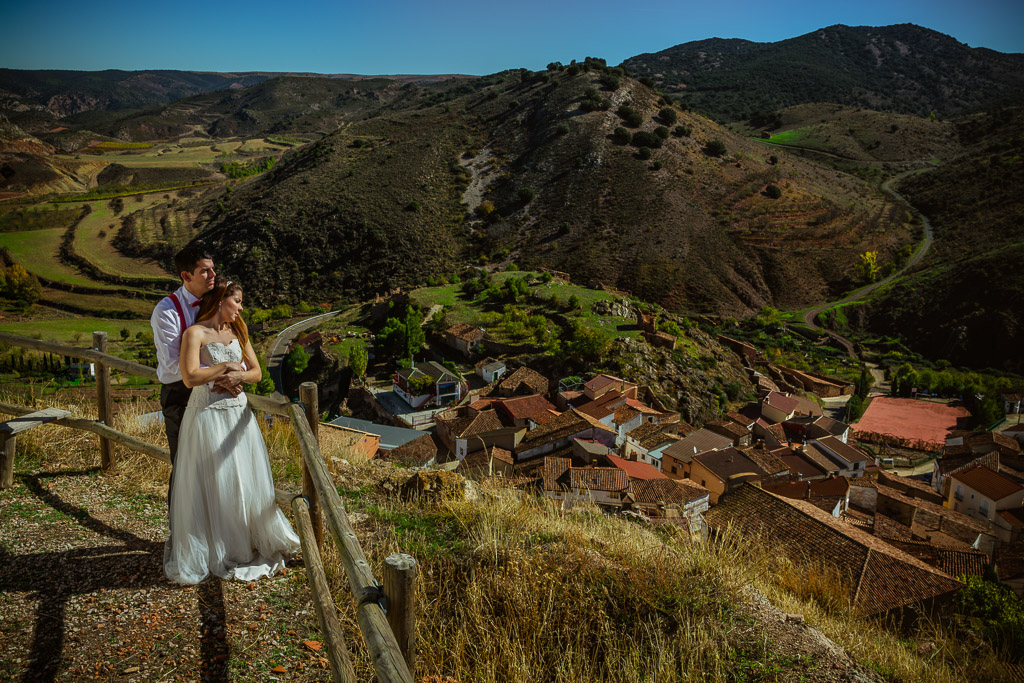 Aladren, un acogedor pueblo de la comarca del campo de Cariñena donde Gema y Guillermo tenían muy claro desde el primer momento que era donde querían el reportaje de postboda, ya que es el pueblo donde se conocieron y crecieron juntos.